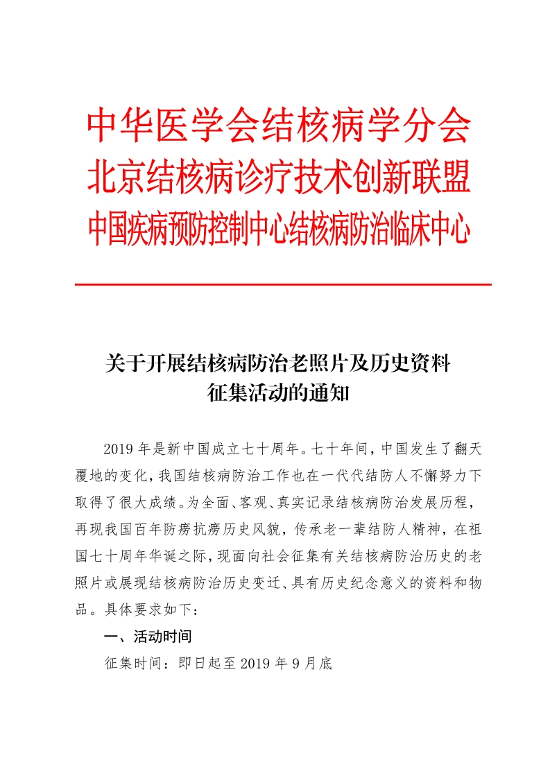 关于开展结核病防治老照片及历史资料征集活动的通知